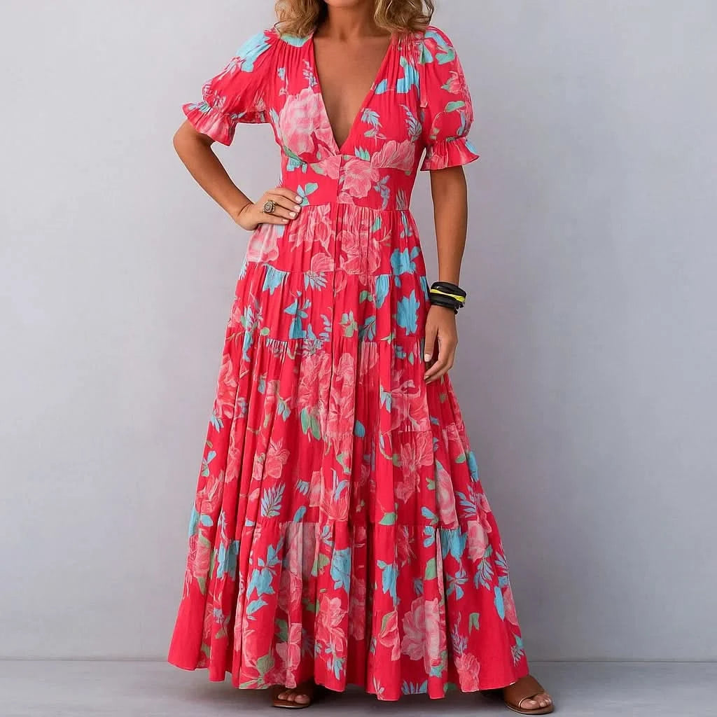 Introducing the Floriana - Vibrant Floral Dress, a stunning statement piece designed to make you shine. With its bold floral pattern and flowing silhouette, this dress is perfect for embracing color and femininity effortlessly.