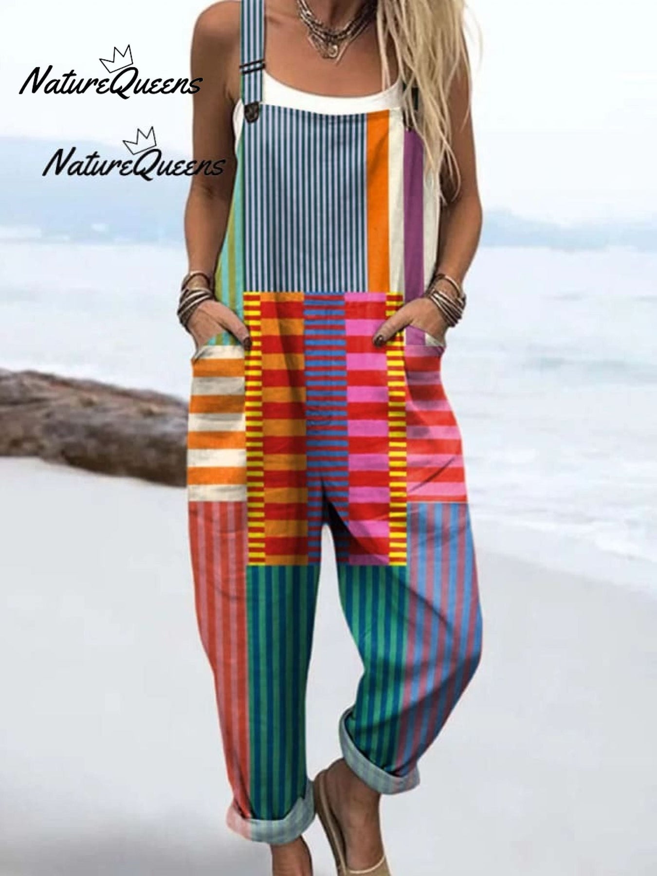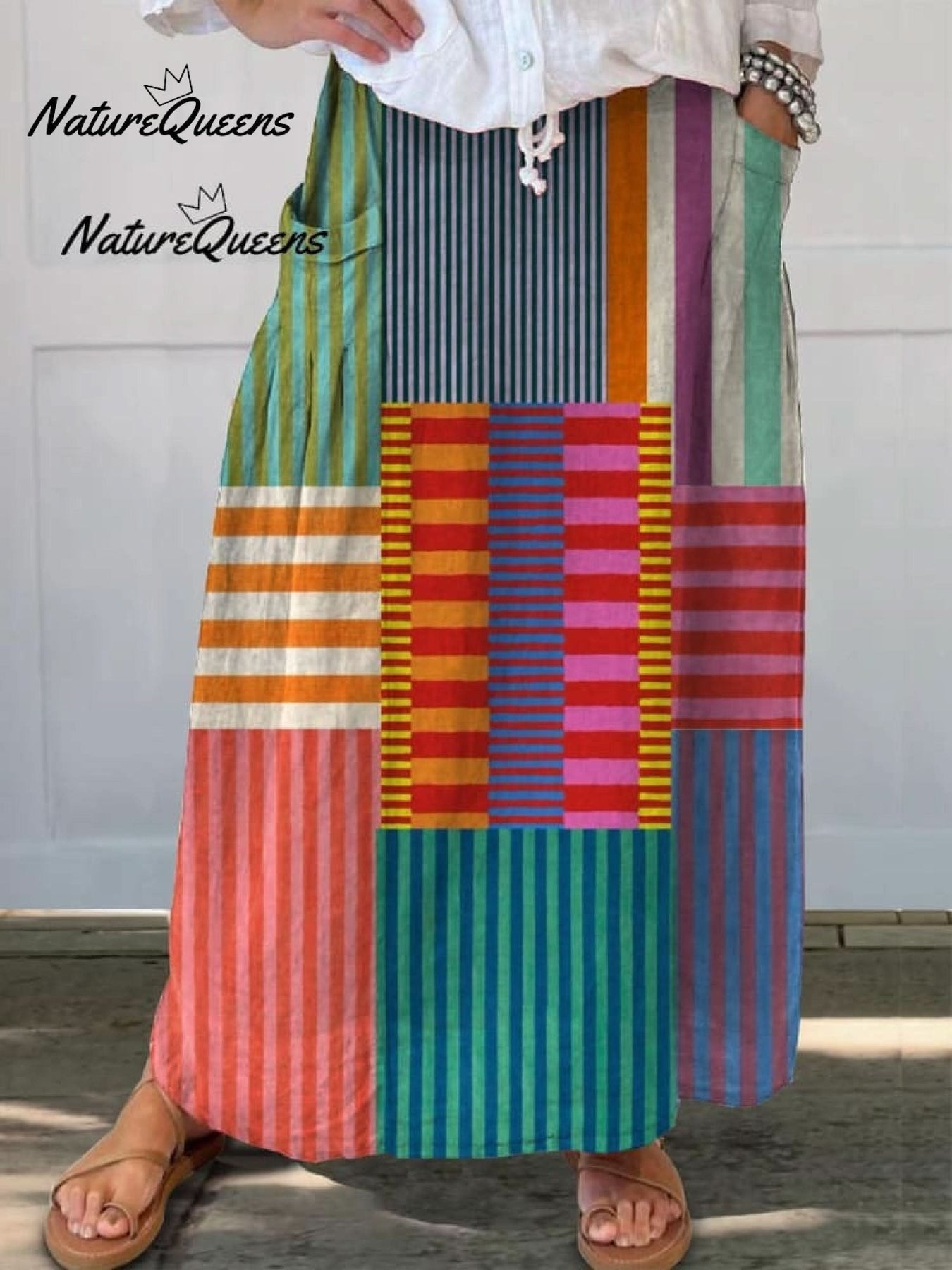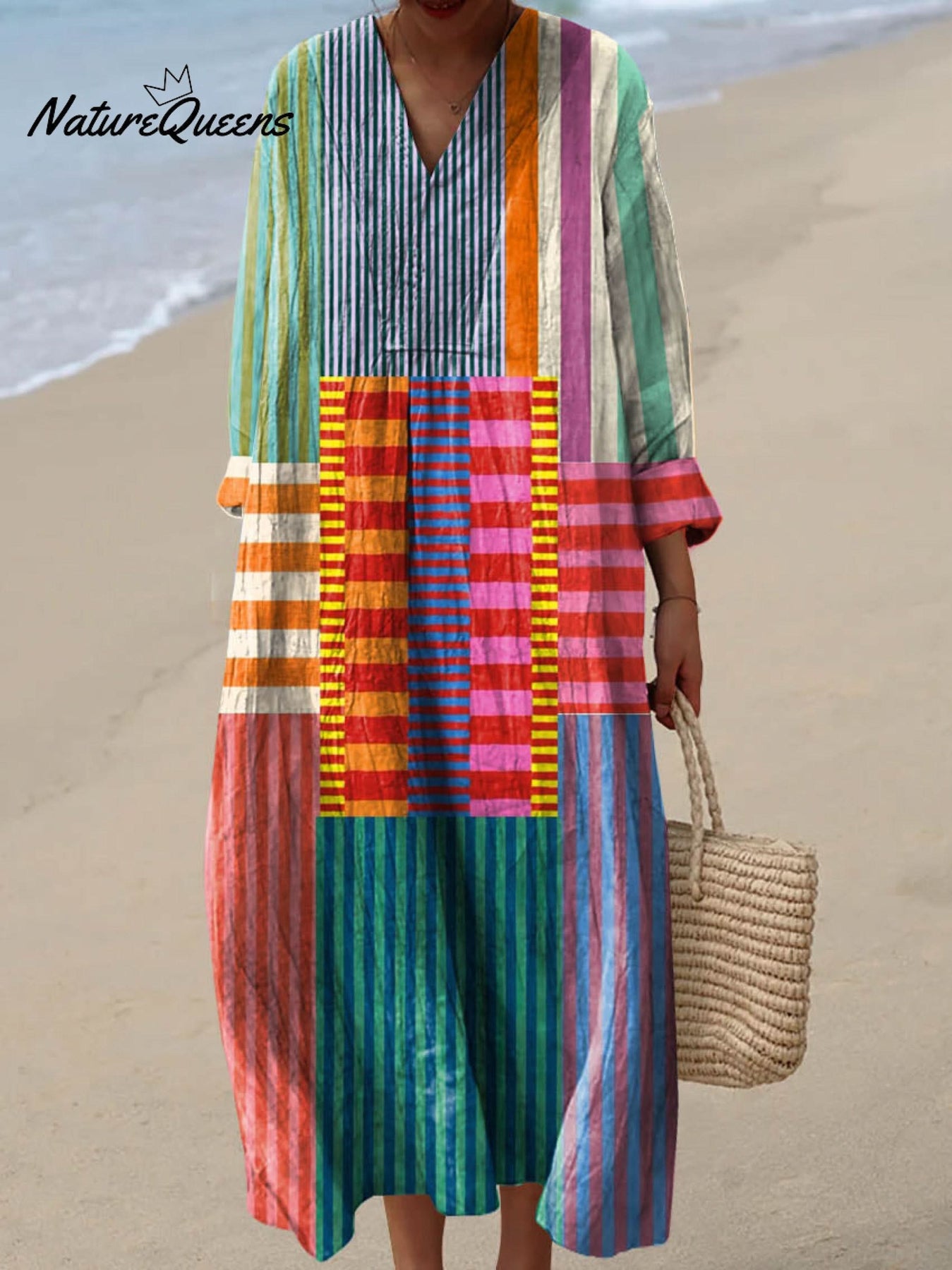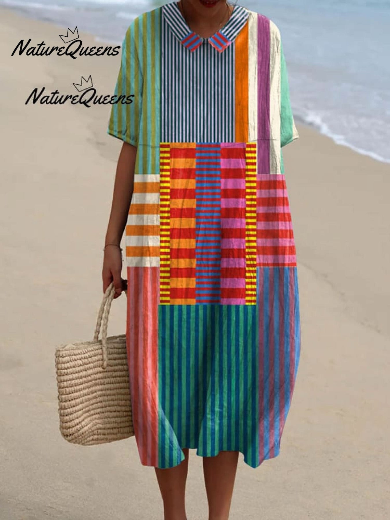 Women's Vintage Geometric Pattern Art Print Cotton Dress