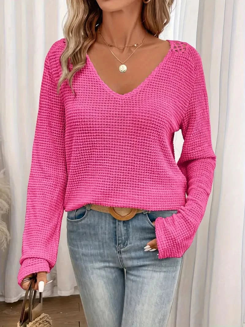 The Shelora - Cozy Polished Top brings together comfort and sophistication in one wear-anywhere piece. With its soft waffle texture and modern V-neckline, it’s the kind of staple that keeps things effortless while still feeling put together.